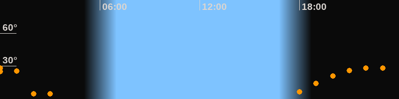 | Höchster Stand (Kulmination) | 22:22 Uhr (h = 28,7°) |