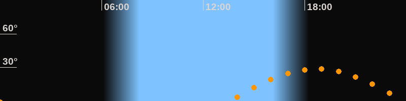 | Höchster Stand (Kulmination) | 18:42 Uhr (h = 28,7°) |