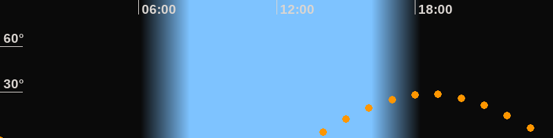 | Höchster Stand (Kulmination) | 18:39 Uhr (h = 28,7°) |