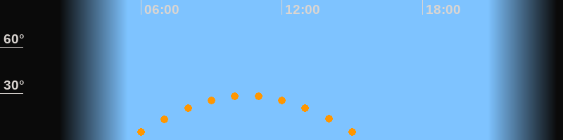 | Höchster Stand (Kulmination) | 10:30 Uhr (h = 28,7°) |