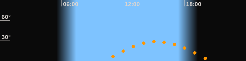 | Höchster Stand (Kulmination) | 15:19 Uhr (h = 28,7°) |