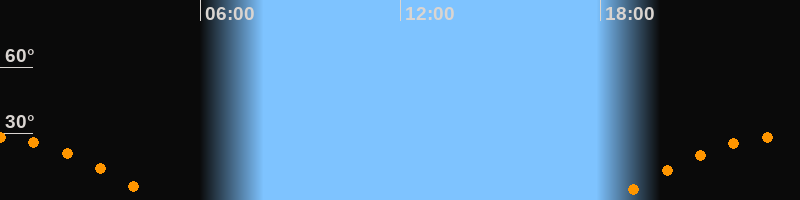 | Aufgang | 18:22 Uhr im Osten (αAz = 106,1°) |