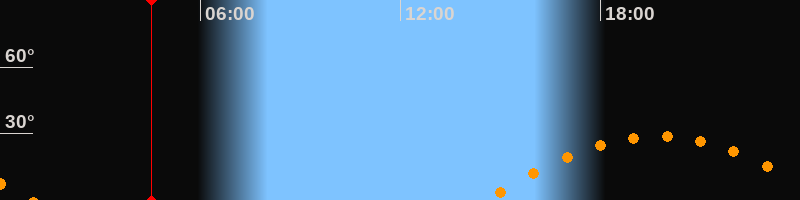 | Höchster Stand (Kulmination) | 19:42 Uhr (h = 28,7°) |