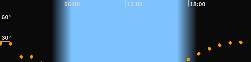 | Aufgang | 17:30 Uhr im Osten (αAz = 106,1°) |