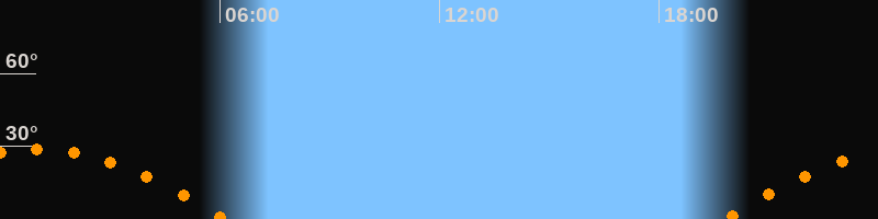 | Untergang | 06:10 Uhr im Westen (αAz = 253,9°) |