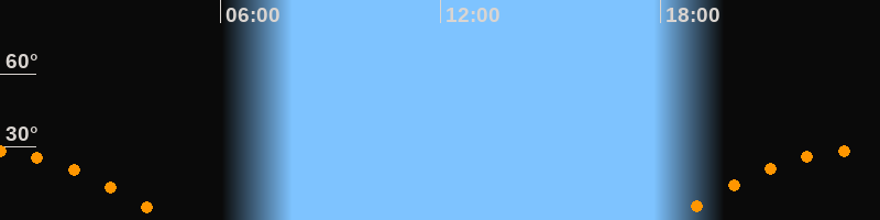 | Aufgang | 18:15 Uhr im Osten (αAz = 106,1°) |