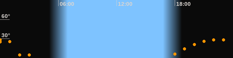 | Aufgang | 17:12 Uhr im Osten (αAz = 106,1°) |