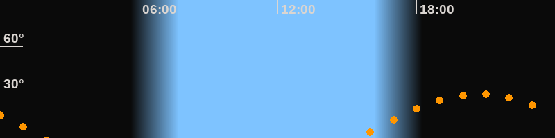 | Aufgang | 15:30 Uhr im Osten (αAz = 106,1°) |
