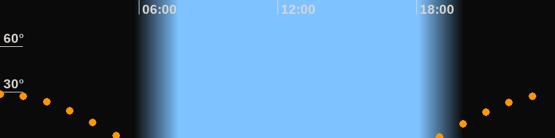| Untergang | 05:14 Uhr im Westen (αAz = 253,9°) |