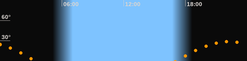 | Untergang | 03:27 Uhr im Westen (αAz = 253,9°) |