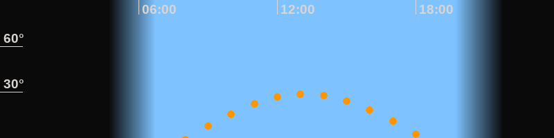 | Höchster Stand (Kulmination) | 13:11 Uhr (h = 28,7°) |