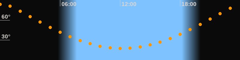 Höchster Stand (Kulmination)00:11 Uhr (h = 84,1°)