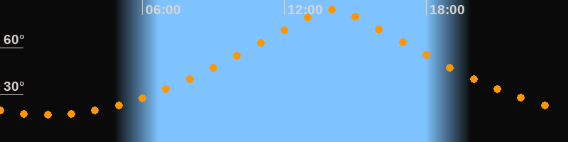 Höchster Stand (Kulmination)14:00 Uhr (h = 84,1°)