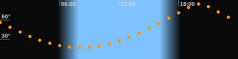 Höchster Stand (Kulmination)20:05 Uhr (h = 84,1°)
