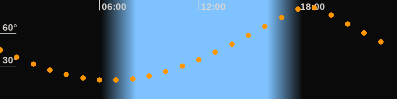 Höchster Stand (Kulmination)18:37 Uhr (h = 84,1°)