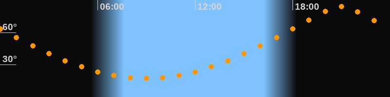 Höchster Stand (Kulmination)20:58 Uhr (h = 84,1°)