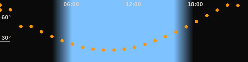 Höchster Stand (Kulmination)22:29 Uhr (h = 84,1°)