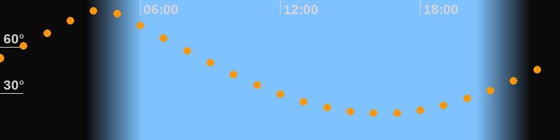 Höchster Stand (Kulmination)04:19 Uhr (h = 84,1°)