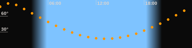 Höchster Stand (Kulmination)01:14 Uhr (h = 84,1°)