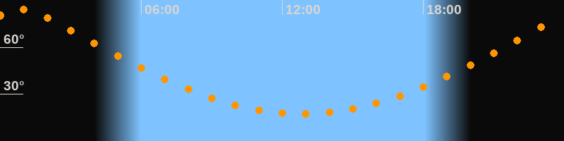 Höchster Stand (Kulmination)00:50 Uhr (h = 84,1°)