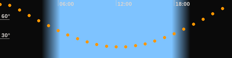 Höchster Stand (Kulmination)00:19 Uhr (h = 84,1°)