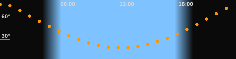 Höchster Stand (Kulmination)00:15 Uhr (h = 84,1°)