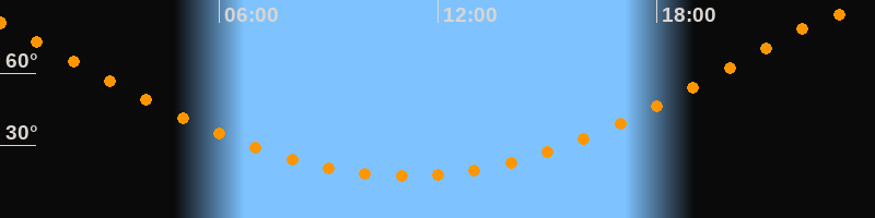 Höchster Stand (Kulmination)23:08 Uhr (h = 84,1°)