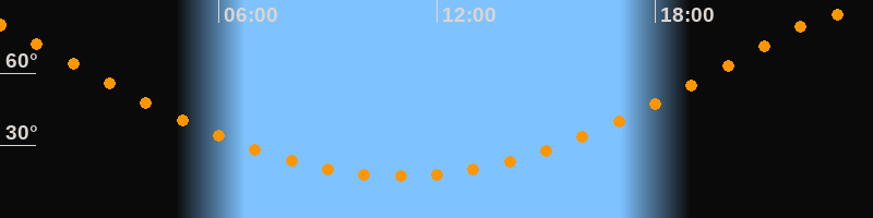 Höchster Stand (Kulmination)23:00 Uhr (h = 84,1°)