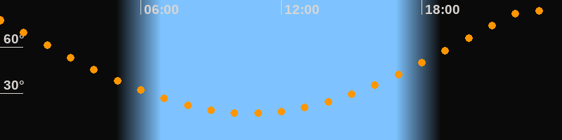 Höchster Stand (Kulmination)22:40 Uhr (h = 84,1°)