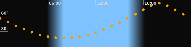 Höchster Stand (Kulmination)19:59 Uhr (h = 84,1°)