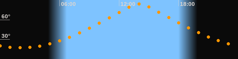 Höchster Stand (Kulmination)14:01 Uhr (h = 84,1°)