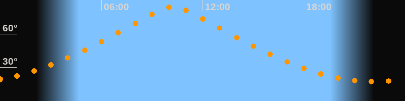 Höchster Stand (Kulmination)10:13 Uhr (h = 84,1°)
