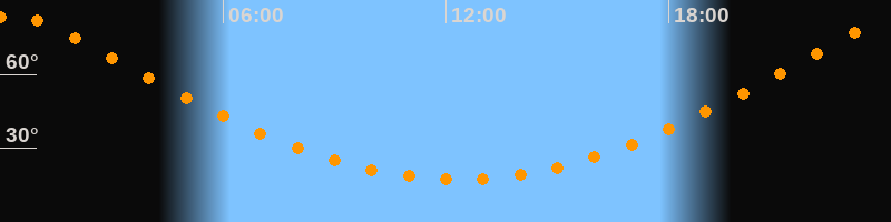 Höchster Stand (Kulmination)00:20 Uhr (h = 84,1°)