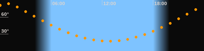 Höchster Stand (Kulmination)00:44 Uhr (h = 84,1°)