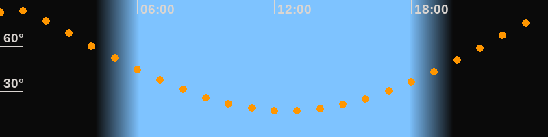 Höchster Stand (Kulmination)00:32 Uhr (h = 84,1°)