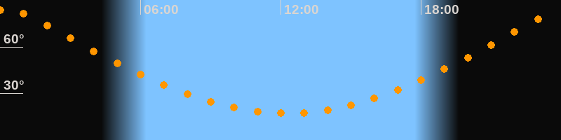 Höchster Stand (Kulmination)00:13 Uhr (h = 84,1°)