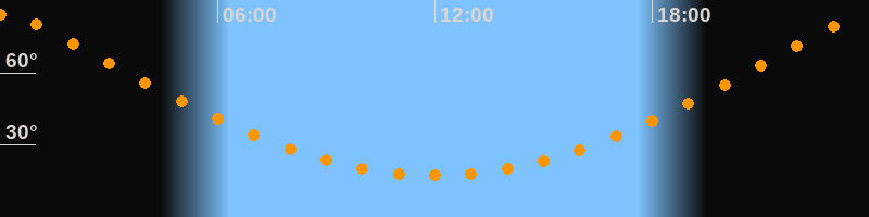Höchster Stand (Kulmination)00:01 Uhr (h = 84,1°)