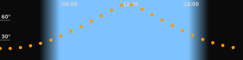 Höchster Stand (Kulmination)12:34 Uhr (h = 84,1°)