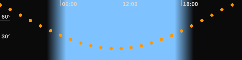 Höchster Stand (Kulmination)23:28 Uhr (h = 84,1°)