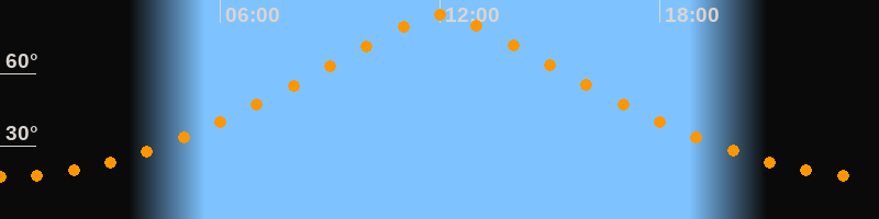 Höchster Stand (Kulmination)12:00 Uhr (h = 84,1°)