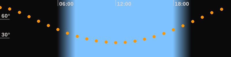| Höchster Stand (Kulmination) | 00:00 Uhr (h = 78,5°) |