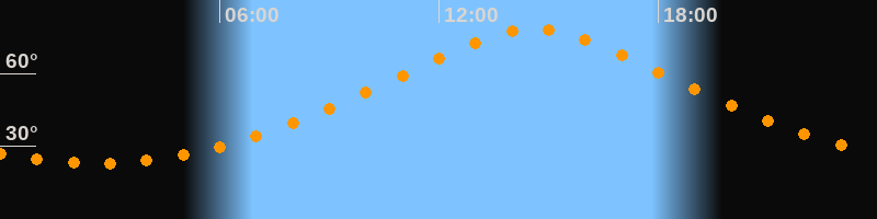 | Höchster Stand (Kulmination) | 14:35 Uhr (h = 78,5°) |