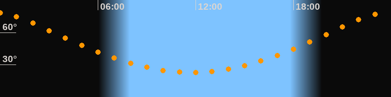 | Höchster Stand (Kulmination) | 23:44 Uhr (h = 78,5°) |