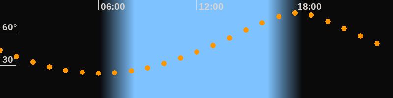 | Höchster Stand (Kulmination) | 18:06 Uhr (h = 78,5°) |
