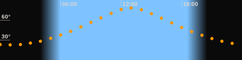 | Höchster Stand (Kulmination) | 12:57 Uhr (h = 78,5°) |