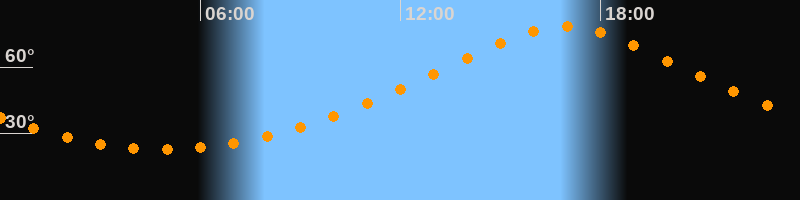 | Höchster Stand (Kulmination) | 16:54 Uhr (h = 78,5°) |