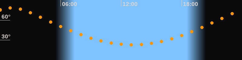 | Höchster Stand (Kulmination) | 01:04 Uhr (h = 78,5°) |