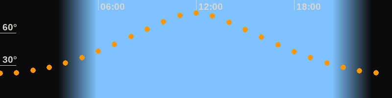 | Höchster Stand (Kulmination) | 11:58 Uhr (h = 78,5°) |