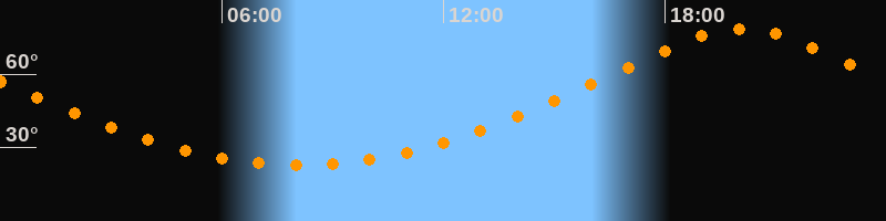 | Höchster Stand (Kulmination) | 20:05 Uhr (h = 78,5°) |