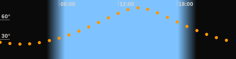 | Höchster Stand (Kulmination) | 14:03 Uhr (h = 78,5°) |
